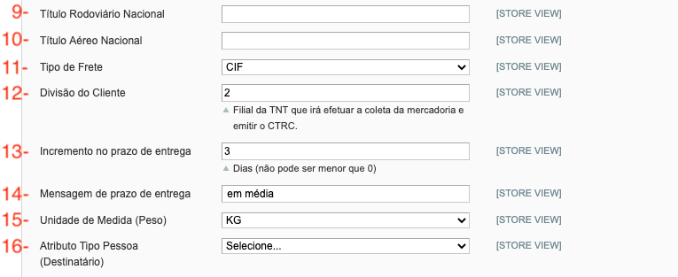 10- Escolha o título par ao serviço de entrega aéreo nacional (se não utilizar esse serviço deixar o campo em branco);